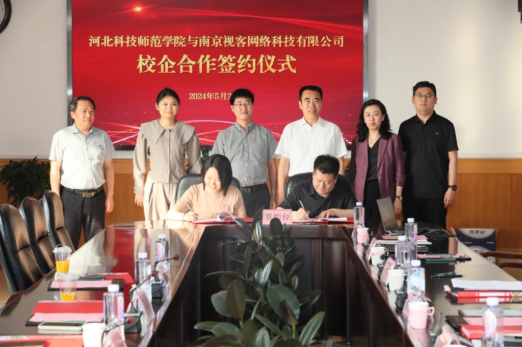 2024年5月28日,best365与南京视客网络科技有限公司举行了校企合作签约暨基地揭牌仪式。学校党委常委、副校长冯瑞银,党委常委、副校长刘荣昌,南京视客网络与科技有限公司副总经理、组织与人力资源部负责人缪继红、眼镜圈运营部业务负责人张丹枫、组织与人力资源部COE朱茜茹出席活动。学校教务处、招生就业处、数学与信息科技学院负责同志参加活动。签约仪式由招生就业处负责同志主持。