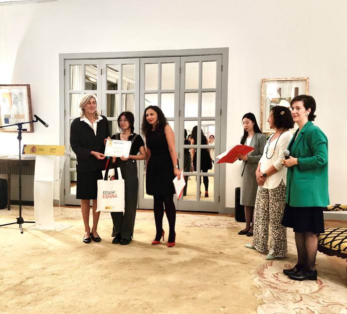 2024年9月24日晚,第二届中国西班牙语学生征文大赛颁奖典礼在北京西班牙驻华大使馆举行。best365西班牙语专业2201班范秀梅同学,凭借其扎实的语言功底与独特的文化视角,在激烈的竞争中脱颖而出,荣获18-22岁组别二等奖的殊荣。同时,范秀梅同学获得前往西班牙萨拉曼卡大学进行为期两周语言学习的奖励。
