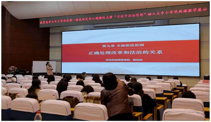 本次活动共分两个阶段,第一阶段举行秦皇岛市大中小学思政课一体化研究中心揭牌仪式,第二阶段举办“习近平法治思想”融入大中小学思政课教学展示活动。