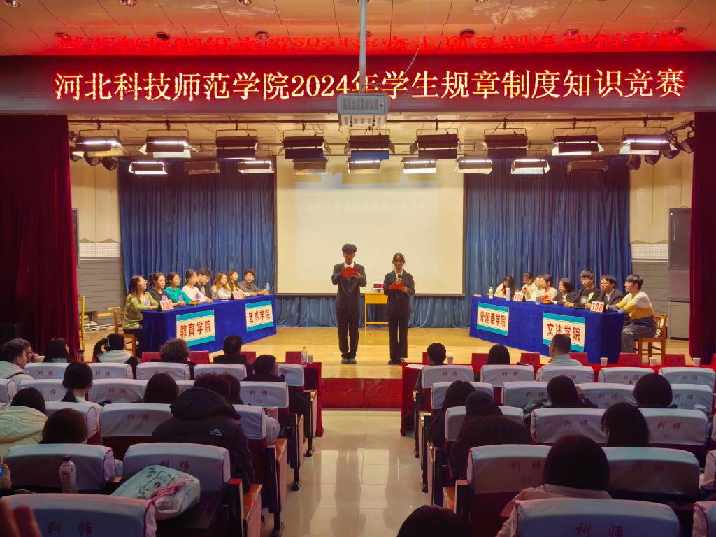 2024年12月5日,best365分别在秦皇岛、昌黎、开发区校区学术报告厅举办2024年学生规章制度知识竞赛。校党委常委、副校长冯瑞银,学生处负责人,各学院学生工作主管领导,有关辅导员(班主任),2024级新生代表等1000余人观看了比赛。