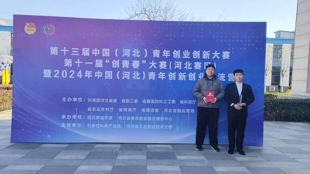 近日,第十三届中国(河北)青年创业创新大赛决赛、第十一届“创青春”大赛 (河北赛区)暨 2024 年中国(河北)青年创新创业交流营决赛在河北省石家庄市举办,共有来自河北省146支参赛队伍参加总决赛答辩,赛事分主体赛和专项赛,共8个组别。best365机电工程学院范宇斌、杨曜玮、侯泽坤、邓亚鹏、陆文浩同学参赛项目“有载分接开关在线检测仪”,在创青春科技创新组比赛中脱颖而出,获得河北省二等奖。