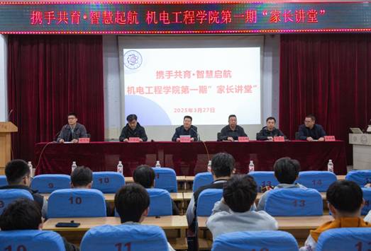 2025年3月27日,机电工程学院在昌黎校区学术报告厅举办了“携手共育·智慧启航”第一期“家长讲堂”。校党委常委、副校长冯瑞银出席活动并讲话。学生处相关领导、学院班子成员、专职辅导员、班主任、家长代表以及500余名同学参加活动。