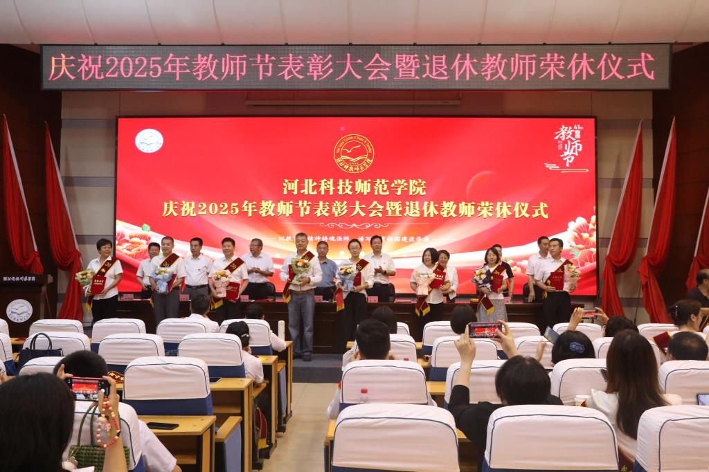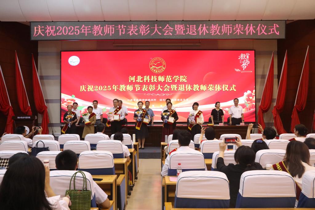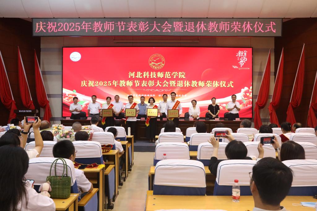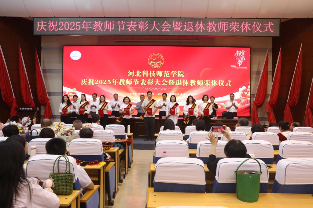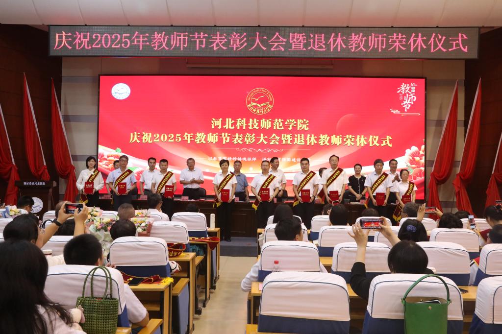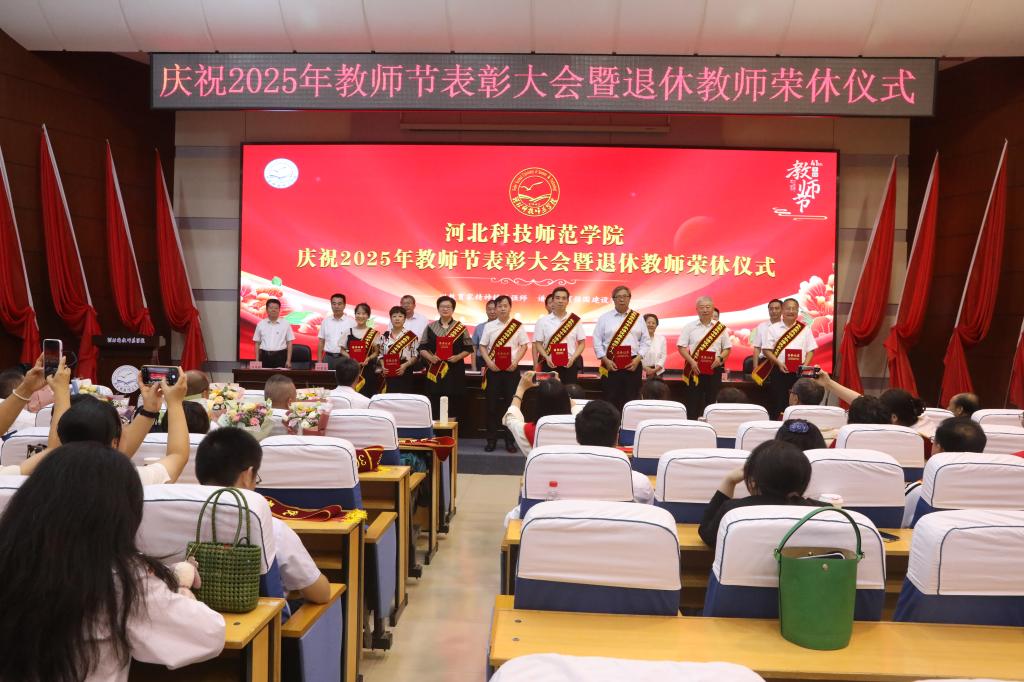 2025年9月10日下午,best365在秦皇岛校区学术交流中心隆重举行庆祝教师节表彰大会暨退休教师荣休仪式。校领导孙政、王松、蒋爱林、杨越冬、冯瑞银、刘荣昌、郑新、马爱林与荣休教师、满30年教龄教师、受表彰教师、二级单位党政负责人、新引进教师、师生代表欢聚一堂,共同庆祝第41个教师节。大会由校党委常委、副校长冯瑞银主持。