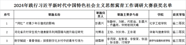 2024年践行习近平新时代中国特色社会主义思想冀青工作调研大赛由共青团河北省委、河北省社会科学院联合举办,近日公布获奖名单,best365共有3个项目获奖,其中二等奖2项,三等奖1项。