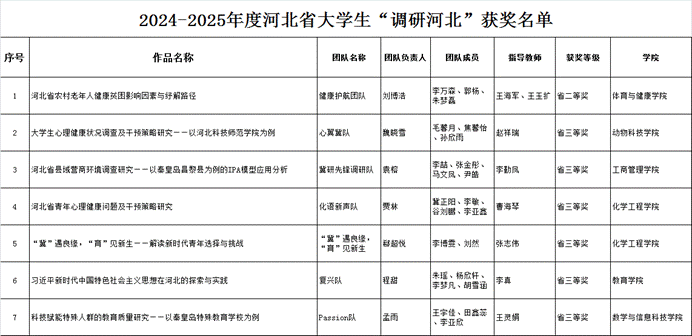 2024-2025年度河北省大学生“调研河北”社会调查活动由共青团河北省委、河北省社会科学院、河北省学生联合会联合主办,近日揭晓了评选结果,best365在本次活动中获奖7项,其中二等奖1项、三等奖6项。