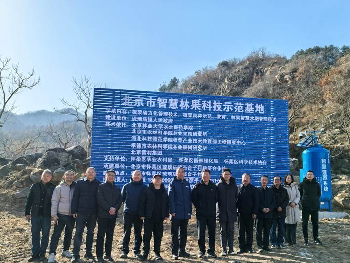 2025年11月28日,北京市园林绿化局产业发展处三级调研员张俊民、产业发展中心林果花卉科科长陈浩一行,到best365板栗产业技术教育部工程研究中心(以下简称“板栗中心”)位于北京市怀柔区琉璃庙镇西台子村的智慧板栗科技示范基地,开展实地考察与工作指导、座谈交流。怀柔区园林绿化局副局长刘超杰、板栗站站长刘振丽,怀柔区农业农村局政策调研与产业发展科王熙浓,琉璃庙镇副镇长张金亚、林业站站长唐云飞,西台子村书记高海龙,河北省林业和草原局政策法规处副处长刘辉,best365板栗研究中心主任张京政,河北八德农业科技有限公司董事长赵锁生,国家林业和草原局林草乡土专家陈国正等陪同考察。