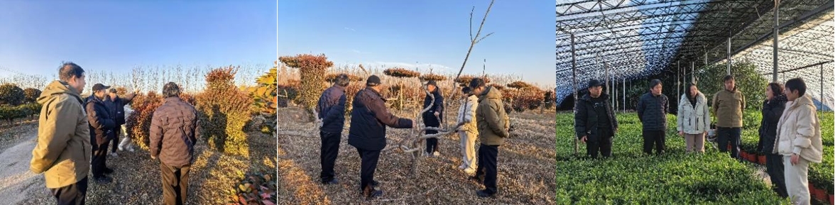 会后,专家团队深入校园园艺实验站考察。在申艳红教授团队展示的彩色马蹄莲等高档球根花卉种质资源库前,张永信主任仔细询问资源引进与保存细节,对其精细化栽培管理成效给予高度评价,对未来推广应用前景表示期待。随后,团队调研张国君院长团队建立的耐盐碱柽柳、观赏海棠等木本植物种质资源圃,围绕木本植物生态适应性展开交流,并就“林药经济”发展模式(利用林下空间发展药用花卉)实现生态与经济双赢提出建设性意见。