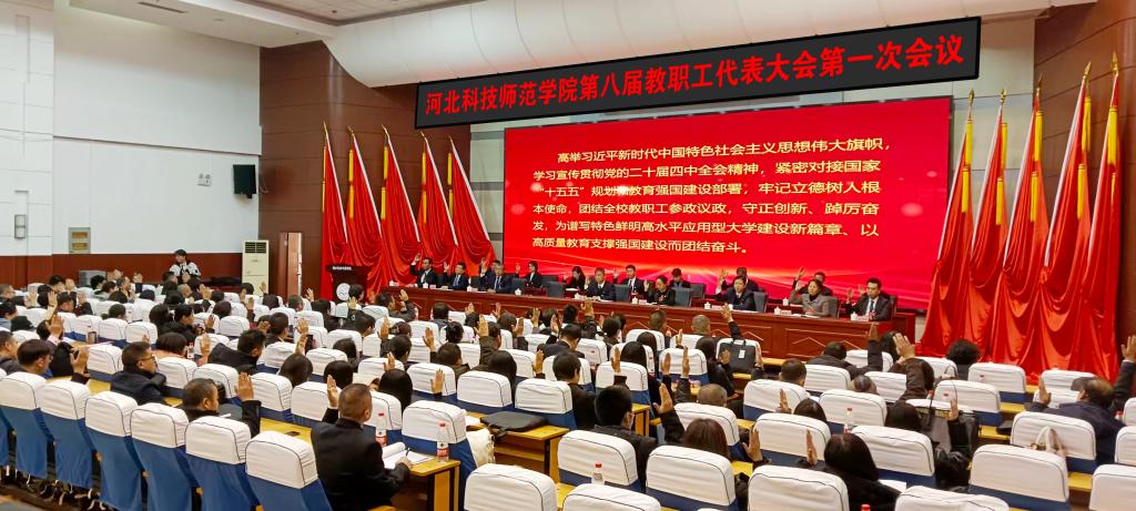大会在庄严的《国歌》声中隆重开幕。秦皇岛市总工会党组成员、教科文卫工会主席禹超应邀出席并致辞。校党委书记孙政致开幕辞并作总结讲话。校党委副书记、校长张明莉作学校工作报告。校党委副书记王松、蒋爱林分阶段主持会议。