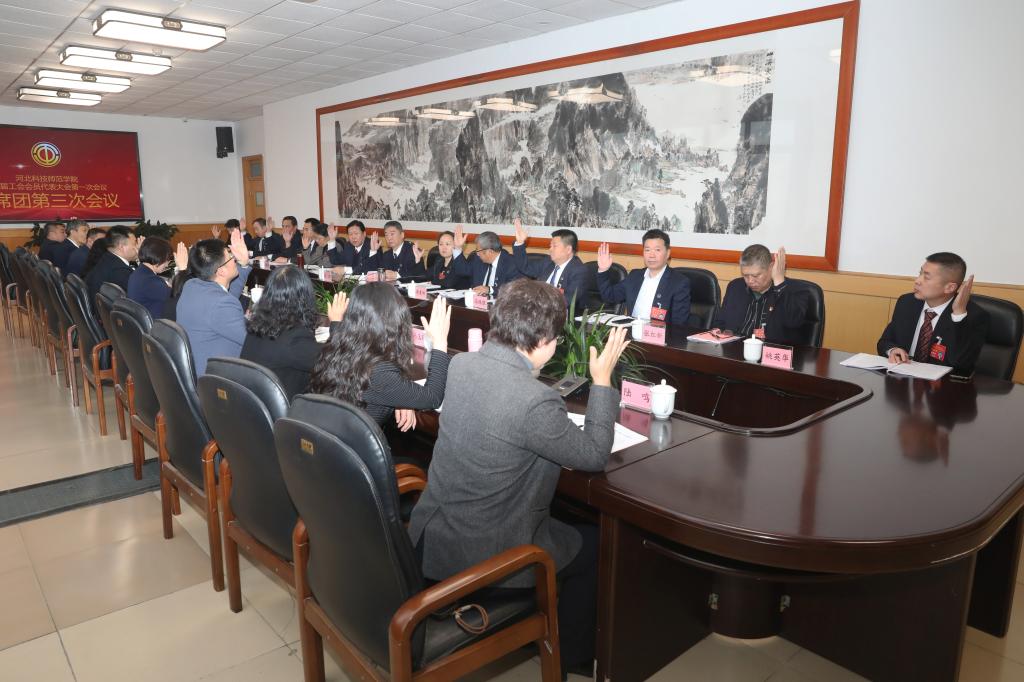 在代表团分组讨论和大会主席团会议后,选举产生了第八届工会委员会委员和经费审查委员会委员,全体与会代表表决通过了《第八届学校女职工委员会建议名单》《第七届工会委员会工作报告的决议》《工会财务工作报告的决议》和《大会倡议书》。