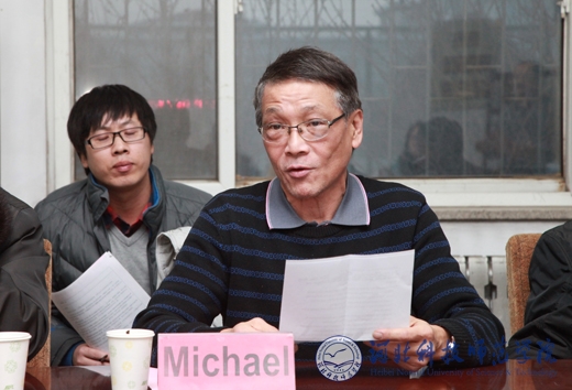 “友人基金”代表、澳大利亚籍华裔教师Michael先生在捐助仪式上致辞