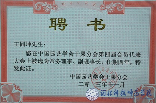 王同坤教授当选为中国园艺学会干果分会副理事长