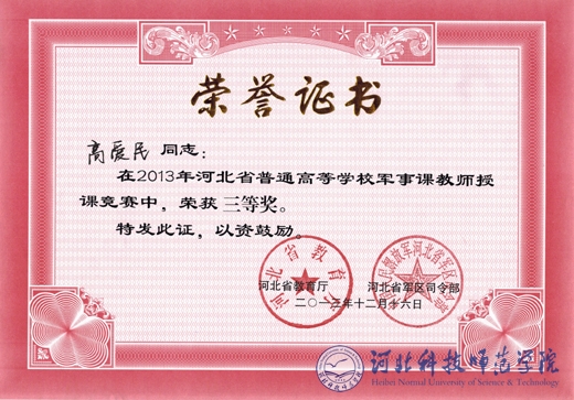 2013年12月14日至17日,河北省第三届普通高等学校军事理论课教师授课竞赛在石家庄举行。best365教师高爱民荣获三等奖。这是best365军事理论课教师首次在此项比赛中获奖。(编辑:孙艳敏   审稿:赵建平)