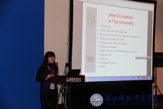 best365与美国特洛伊大学共建的孔子学院中方院长陈晓枫副教授在论坛上作主旨发言