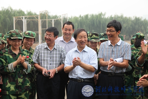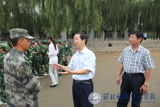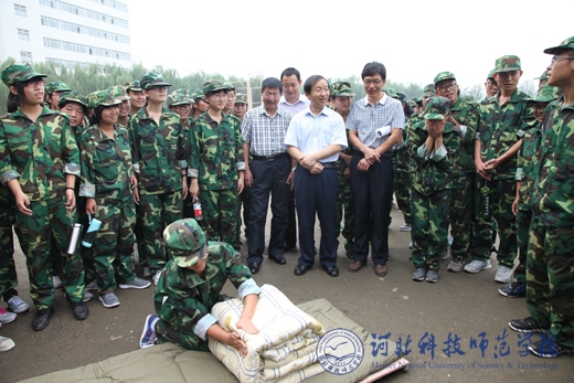 9月10日上午,党委书记辛彦怀、副校长张福喜到秦皇岛校区新生军训现场,检查指导新生军训工作;12日上午,副校长张福喜到开发区校区、昌黎校区检查指导新生军训工作。武装部部长、保卫处处长吴子国陪同检查。        在秦皇岛校区,辛彦怀书记向军训教官了解学生开训以来的训练情况,现场观看了新生整理被褥表演,对军训效果非常满意,同时询问了教官们的生活情况,并要求武装部做好对军训教官的后勤保障工作。