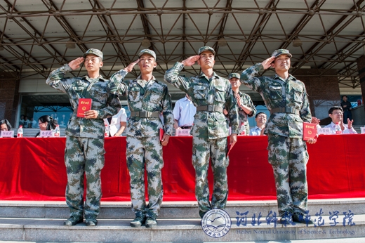 下午2:30,best365秦皇岛校区训练场、昌黎校区训练场、开发区校区主楼北侧广场上,英姿勃发的2013级全体受训学员分别列成整齐的方阵,身着绚烂的迷彩、迈着矫健的步伐依次通过大会主席台接受检阅,嘹亮的口号声响彻云霄,彰显出青年大学生的蓬勃朝气和青春豪迈。同学们整齐划一的动作和气宇轩昂的气势,展现出纪律严明、作风优良、素质过硬、勇挑重担的新世纪军人风采,赢得了部队首长、学校领导和现场师生的热烈掌声与一致好评。 辛彦怀书记、王同坤校长、宋绍富副书记分别在昌黎校区、秦皇岛校区、开发区校区军训汇演暨开学典礼上讲话。校领导代表全校师生员工首先对来自全国各地的6000余名新同学表示热烈欢迎,随后简要介绍了学校概况和今后5年学校“稳定规模、调整结构、提高质量、办出特色”的总体思路和建成特色鲜明的科技师范大学的奋斗目标。同时,要求全体2013级新同学一要调整心态,尽快适应大学生活;二要勤奋学习,全面提高知识、能力和素质;三要志存高远,努力成为德才兼备的有用人才。校领导在讲话中用习近平总书记的一段话来激励全体新同学:“青年时期多经历一点摔打、挫折、考验,有利于走好一生的路。要历练宠辱不惊的心理素质,坚定百折不挠的进取意志,保持乐观向上的精神状态,变挫折为动力,用从挫折中吸取的教训启迪人生,使人生获得升华和超越。”。