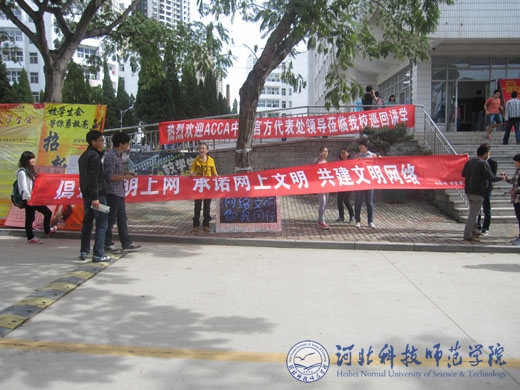 为响应国家互联网信息办公室“共守‘七条底线’”的号召,进一步规范大学生文明用网行为,营造健康向上网络环境,积极传播正能量,2013年9月,在校团委指导下,best365学生会在全校开展了以“倡导网络文明新风”为主题的网络文明宣传活动,精心组织了包括网络文明宣讲、条幅签名、倡议书、网络文明口号征集等活动。