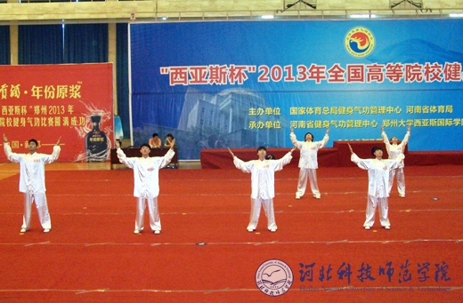 本次比赛由国家体育总局健身气功管理中心、河南省体育局主办,河南省健身气功管理中心、郑州大学西亚斯国际学院承办。来自清华大学、北京体育大学、上海体育学院、武汉体育学院等57所高校的近300名运动员参加了易筋经、五禽戏、六字诀、八段锦等四种功法的集体和个人项目的比赛。(编辑:孙艳敏      审稿:田 毅)