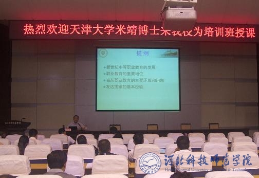 培训期间,best365聘请了天津大学米靖博士、天津职业技术师范大学曹晔教授、秦皇岛职业技术学院孙景余教授和玉田职教中心张铁庄副校长做了专题报告,这些报告对于引领学员认清职业教育本质、把握职业教育发展大势、坚定职业教育改革方向和信念、推进职业教育由规模扩张向质量提升转型起到了很好的促进作用。