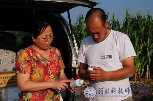 史秋梅教授向鸡场场长介绍best365研制的新药