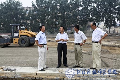 王同坤校长一行重点检查了开发区校区、昌黎校区体育场修缮工程施工工作。在昌黎校区体育场施工现场,王同坤校长与施工人员进行了沟通,询问了工程施工进度、质量保证情况。要求后勤与国有资产管理处和施工人员一定要保证工程质量,保证施工进度。王同坤校长还与施工现场监理人员进行了交谈,要求监理人员对施工质量严加看管,履行职责,为业主把好关。王同坤校长对工程总体进展情况表示满意。