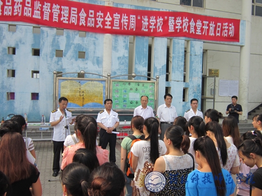 6月27日下午,由秦皇岛市食品药品监督管理局开展的“食品安全宣传周‘进学校’暨学校食堂开放日”活动在best365开发区校区正式启动。市食品药品监督管理局副局长肖峻岭与各相关科室工作人员来到活动现场,就食品安全知识向师生代表进行了宣传与讲解。best365党委常委、副校长郭国维,开发区校区办主任王旭民,后勤服务总公司副总经理苏小滨出席了此次活动。