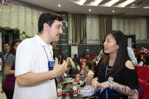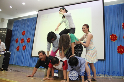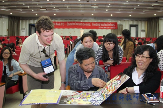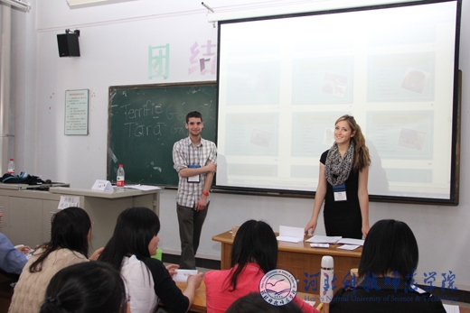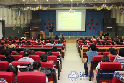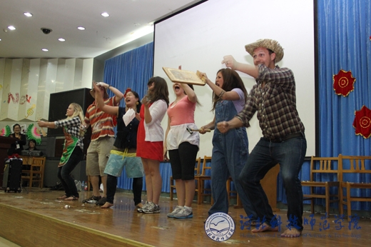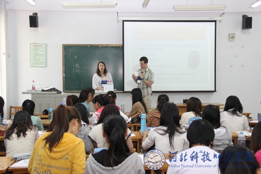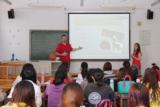 精心准备的12节课堂教学,惠及外国语学院16个班级。学生们不仅切实感受到了西方本土教学方式与中式教学方式的差别,也学到了很多国内课本上、课堂上没有的知识。课堂互动频繁,轻松幽默而又不失严谨;三场讲座,既有针对学生克服迷茫,战胜挫败的心理和实战措施,又有面向师范类师生教育教学的方法与技巧;三场歌舞及幽默剧的表演,让所有现场观看的师生捧腹,而大笑过后,更多地是钦佩这些志愿者教师的敬业和认真精神,并为之感染;五次英语角活动,惠及全校师生,地道的英语发音,真实的语言场景,加上自由与面对面的沟通,极大地调动了全校学生学习英语的热情和积极性。