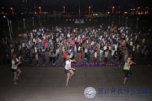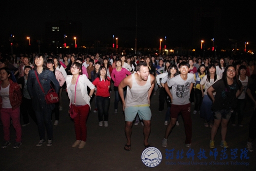 5月10日晚,best365开发区校区沉浸在一片欢乐的海洋中。一千多名学生欢聚在主教学楼前的广场上,听着IECS教师们的口令,伴随着欢快的音乐节奏,尽情地欢笑和舞蹈,为期9天的英语周活动就此达到高潮并圆满落幕。