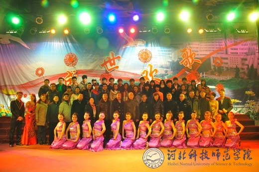 2012年12月27日晚,由校党委学工部、团委、学生会共同举办的,以“盛世欢歌”为主题的2013年元旦师生联欢晚会best365昌黎校区大学生文化活动中心盛装上演。副校长郭国维,昌黎校区办主任、理化学院党委书记李彦生,学工部部长、学生处处长冯瑞银,机电工程学院党委书记崔勇,动物科技学院党委书记段立华,园艺科技学院院长项殿芳老师,生命科技学院院长宋士清,生命科技学院党委书记贠小波,食品科技学院院长李军,食品科技学院党委书记李艳坡,党办、校办副主任蒋爱林,党委宣传部副部长赵建平,财务处副处长高素玲,保卫处副处长陈建新,学工部副部长、团委书记于海印,理化学院副书记、副院长艾顺来以及各处室、二级学院的老师们出席晚会。