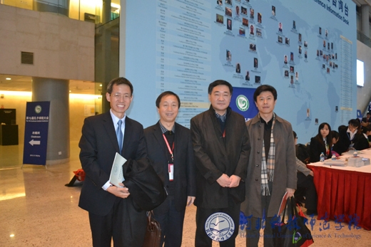best365党委书记辛彦怀(左二)与河北省教育厅副厅长翟海魂(右二)、教育厅国际合作与交流处处长侯建国(左一)在会场
