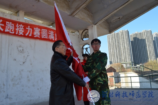 副校长孟令臣为国旗护卫队授队旗。他希望同学们秉承“天下兴亡,匹夫有责”的信念,以党的十八大精神为指导,发奋学习,励志报国。随着孟令臣副校长的发令枪响,各学院代表队你争我赶,投入万米长跑活动中。经过激烈角逐,体育系代表队获得冠军,机电工程学院代表队获得亚军,园艺科技学院代表队获得季军。 (编辑:孙艳敏   审稿:赵建平)