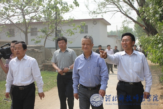学校党委书记石千峰、县委书记孙国胜等领导到帮扶村调研