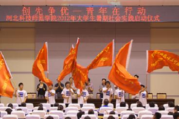 启动仪式上,校团委书记于海印宣读了《关于开展“创先争优—青年在行动”2012年大学生暑期科技、文化、卫生“三下乡”社会实践的通知》,对best365今年的暑期社会实践工作进行了具体布置;参加暑期社会实践的文法学院带队教师王杰彦老师和财经学院付晓桐学生代表分别做了发言;学校领导为即将参加社会实践活动的小分队代表授旗;最后学工部部长、学生处处冯瑞银作了重要讲话,他在讲话中肯定了best365近年来暑期社会实践活动的成绩,强调了恰逢建团九十周年和十八大即将召开之际开展暑期社会实践活动的重大意义,并对全校参与暑期社会实践的团队成员提出了要求:严守纪律,确保安全;勤奋努力,积累经验;牢记使命,树立形象;深化成果,服务社会。