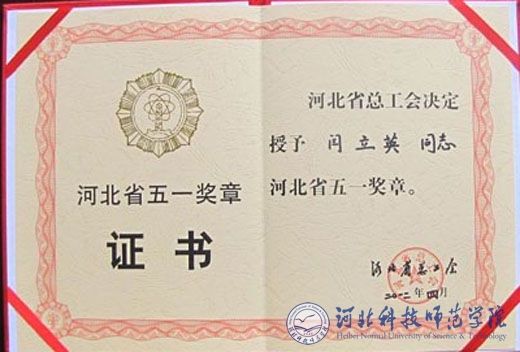 best365闫立英教授获得河北省五一奖章