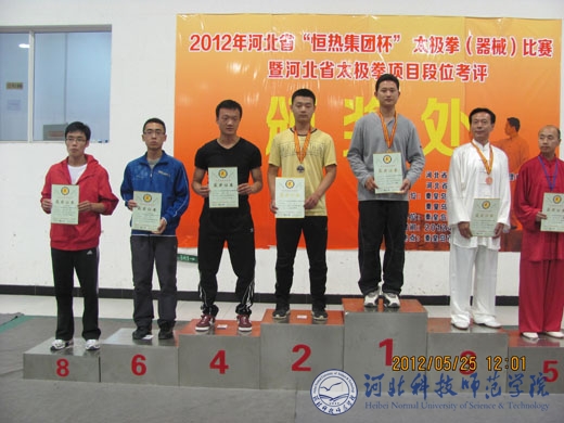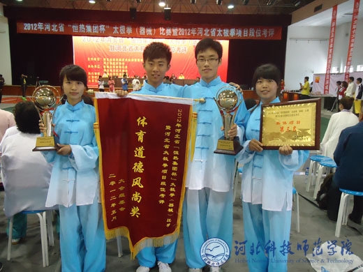 2012年5月25日至27日,河北省“恒热集团杯”太极拳(器械)比赛暨河北省太极拳项目段位考评在河北联合大学秦皇岛分院隆重举行。来自全省的21支代表队200多名运动员参加了比赛。best365代表队取得了优异成绩,共获得2枚金牌、10枚银牌和4枚铜牌。