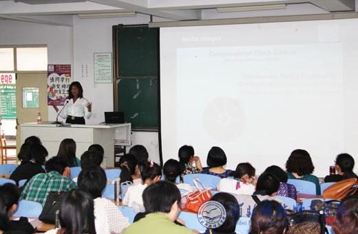 6月7日,美国富尔布莱特奖获得者茱莉亚·威尔逊女士在开发区校区为外国语学院的师生们作了一场关于全球化背景下如何加强交流的讲座。国际合作与交流处处长东方阳、副处长孙学文和外国语学院院长邵丽君、副院长游建民、副院长崔海英及外国语学院的师生听取了讲座。