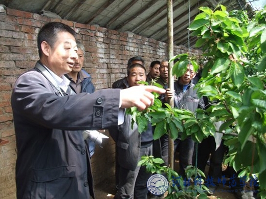 best365边卫东教授为桃林口村干部群众介绍设施樱栽培技术