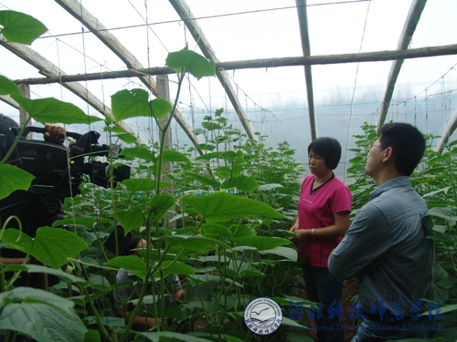 2011年9月15日,河北电视台“河北新闻联播”栏目记者组来best365采访闫立英教授。校党委宣传部、科研处配合组织了采访活动。记者组一行深入到闫立英教授主持研发的“绿岛”系列优质黄瓜新品种中试与示范基地——秦皇岛市昌黎县靖安镇马芳营村的农家蔬菜大棚和best365的蔬菜育种试验基地进行了实地采访。