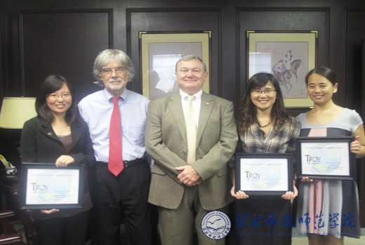 2011年8月,best365与美国特洛伊大学共建孔子学院的中方院长陈晓枫副教授、王冬梅和于开拓老师在特洛伊大学亚当斯行政楼参加了由特洛伊大学副校长英格拉姆博士主持的颁奖仪式。三位教师通过自己的工作成绩获得“特洛伊大学全球交流贡献奖”。这是best365外派教师第三次在特洛伊大学荣获此奖。孔子学院中方院长陈晓枫老师还另外获得“特洛伊孔子学院优秀领导奖”。
