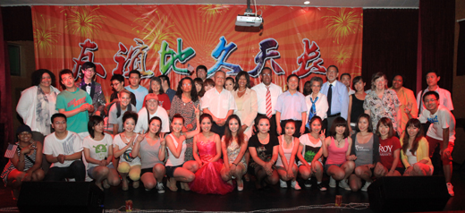 美国泽维尔大学与特洛伊大学师生同best365党政领导和全体演员合影留念