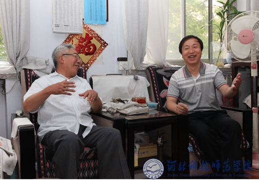 辛彦怀校长同离休老党员于文学亲切交谈