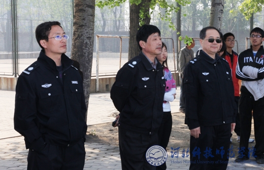 学校保卫处工作人员在场外执勤