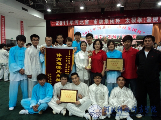 2011年5月5日至8日,河北省“市政集团杯”太极拳锦标赛在秦皇岛市举行。best365派出两支代表队参加了个人单项和集体项目的比赛。经过剧烈的角逐,体育系许鹏展获得男子青年组42式太极剑金牌、42式太极拳银牌、陈式传统太极拳二等奖,张丽获得女子42式太极拳金牌、传统太极刀一等奖、陈式传统太极拳三等奖。集体项目分别获得第七名和第八名,并获团体总分第七名。同时,许鹏展、张丽两位同学及best365代表队被大会授予“体育道德风尚奖”。