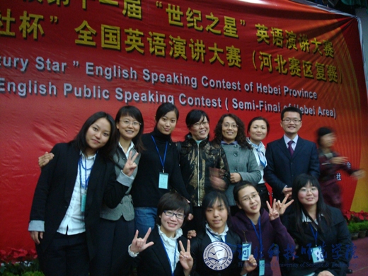 2010年11月19日至21日,河北省高等学校第十一届“世纪之星”英语演讲大赛暨2010年“外研社杯”全国英语演讲大赛河北赛区复赛在唐山学院举行,全省近百所高校400余名选手参加了此次比赛。大赛共分英语专业学生组,非英语专业学生组,高职高专学生组和青年英语教师组。best365共派出了8名学生和2名教师参赛。