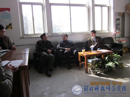 图为副校长孟令臣到园艺科技学院调研并指导工作