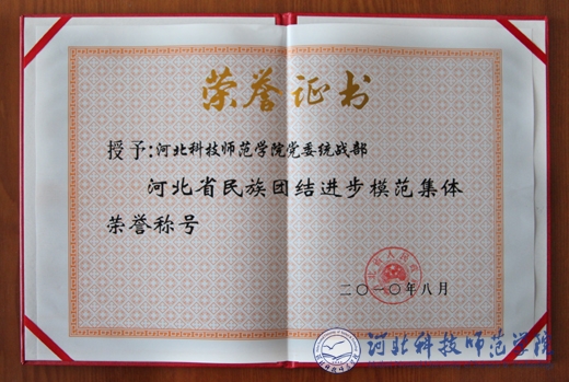 2010年9月28日,河北省第六次民族团结进步表彰大会在省会石家庄召开。best365党委统战部被河北省人民政府授予“河北省民族团结进步模范集体”荣誉称号。