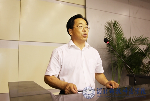 图为孟令臣副校长在仪式上讲话
