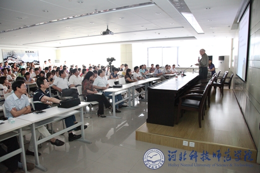 图为美国特洛伊大学副校长Dr. Roach教授作专题讲座