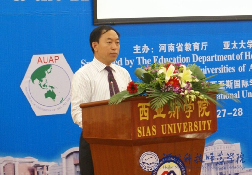 “中外合作办学教育发展国际论坛暨第十一届亚太大学联合会学习与分享论坛”于2010年5月27日至28日在河南郑州大学西亚斯国际学院隆重举行。会议由亚太大学联合会、河南省教育厅主办,郑州大学西亚斯国际学院承办,论坛以“高等教育与国际合作”为主题,旨在加强国际学术交流,探讨中外合作办学的理论与实践,为我国合作办学的发展注入新的活力和动力。best365党委常委、欧美学院党委书记、院长杨洪青,国际交流处处长东方阳,欧美学院董事长陈秋兰参加了会议。