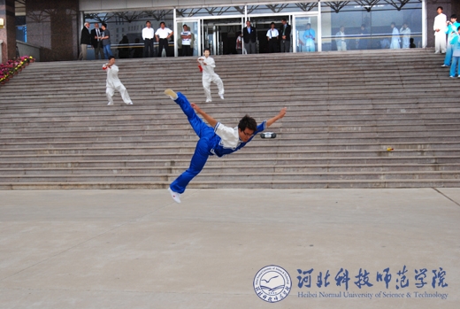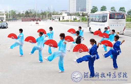 图为体育系学生在进行太极扇表演