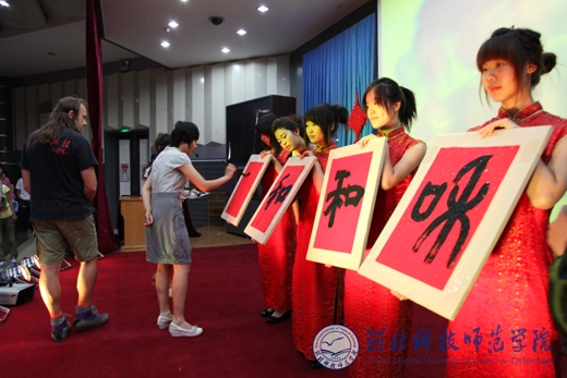 图为best365文法学院学生的书法表演